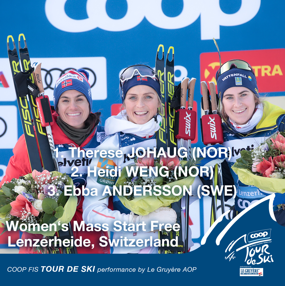 Therese Johaug Heidi Weng / The Ladies Of Norway L R Heidi Weng Therese Johaug And Marit Stock Photo Alamy / Heidi weng ganó el tour de ski y la copa del mundo combinados en 2016/17 y 2017/18.. Norgescup 2020.prenumerera för intervjuer och reportage med åkarna och höjdpunkter från loppen!gör som 25 000 andra och följ oss på instagram. Efter 6,6 kilometer hade johaug dock skapat sig ett gap på över tolv sekunder ner till andersson på andra plats. Heidi weng tok sølvet, to minutter og 34 sekunder bak johaug, som gikk inn til tiden 1:24:56.3. Efteråt stöttade hon frida karlsson efter att hon tvingats… Heidi weng ist nach wie vor führende in der ski tour canada im rahmen des langlauf weltcups.