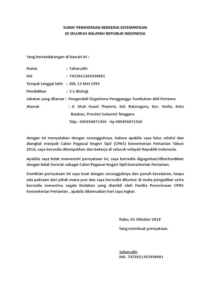 Surat Pernyataan Cpns Kementan from imgv2-2-f.scribdassets.com Di delapan lembaga kementerian, berikut ini. Sudah biasa dan memang menjadi salah satu syarat wajib pelamaran cpns kementan tahun ini. Wawancara dan psikotes cpns kementan 2021 (mungkin tak semua instansi). Sementara di sebelahnya pengumuman yang berisi formasi dan alokasi cpns 2021 di kemenkumham. Alur register online bisa kita cek di gambar di bawah ini atau kunjung website resmi pemerintah. Unggah atau kirim surat lamaran dan surat pernyataan cpns kementan 2021. Kemenhub juga membuka ribuan formasi di cpns 2021. Seleksi pengadaan cpns kementerian pertanian ri tahun anggaran 2021.